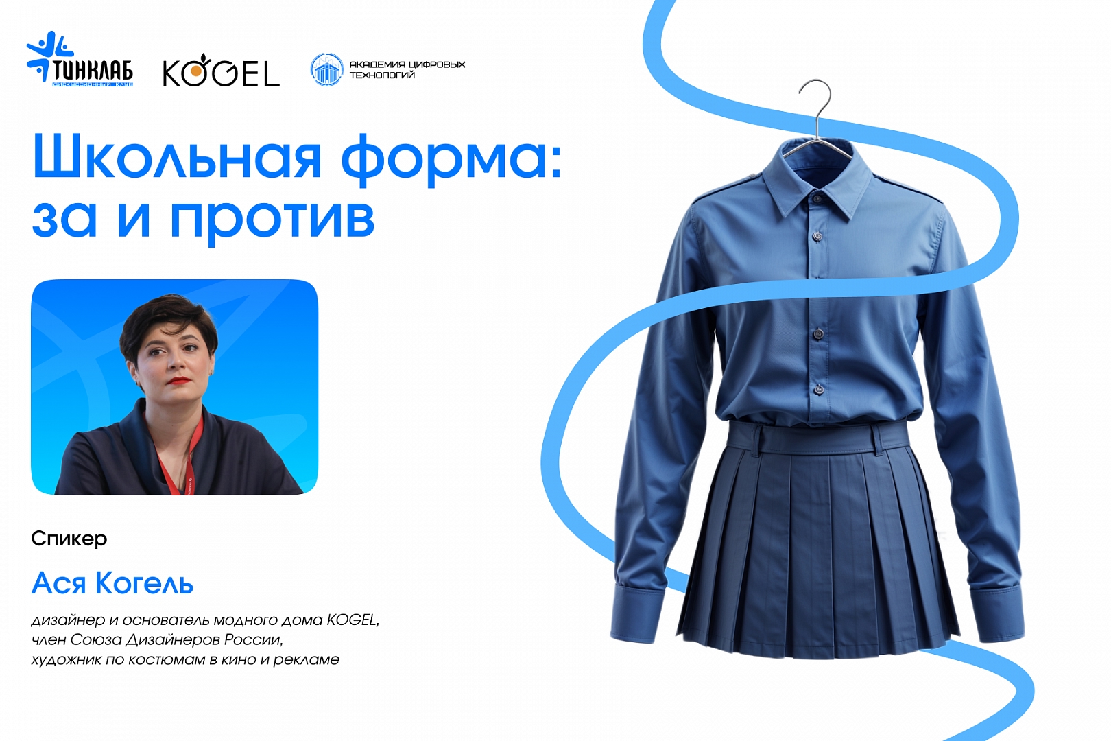 Приглашаем вас на нашу следующую дискуссионную встречу в рамках проекта «ТинКлаб», где гостем станет Ася Когель — дизайнер одежды, основатель модного дома KOGEL, член Союза Дизайнеров России и художник по костюмам в кино и рекламе.
